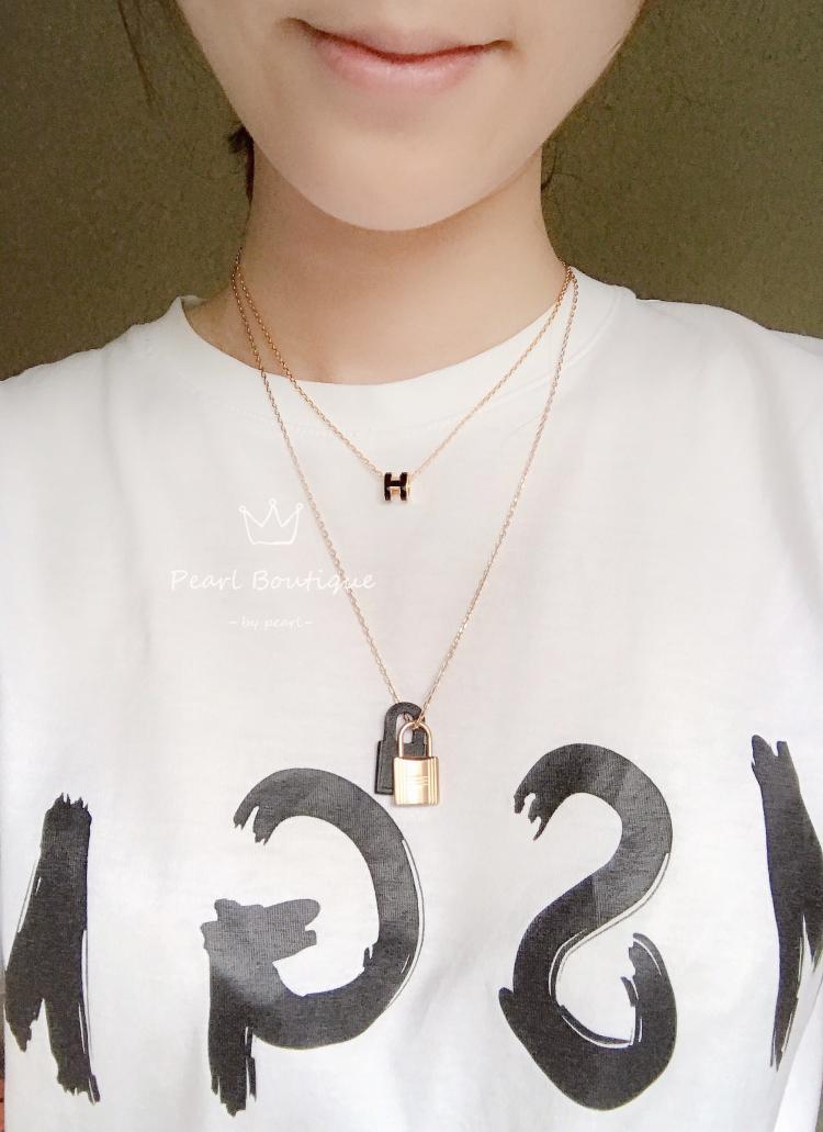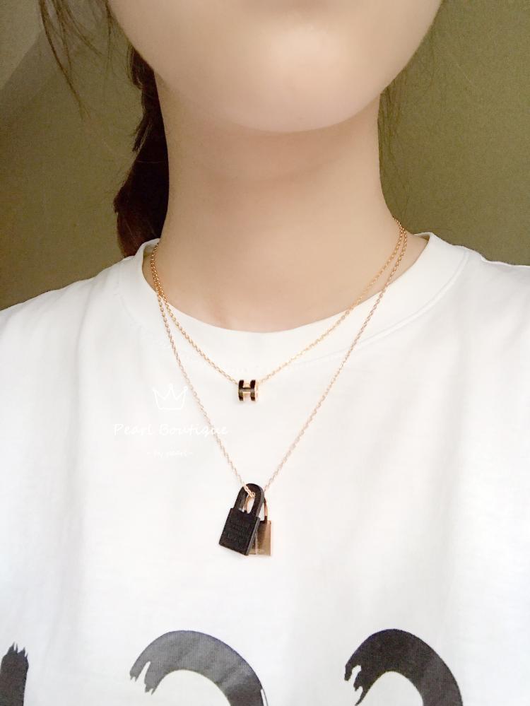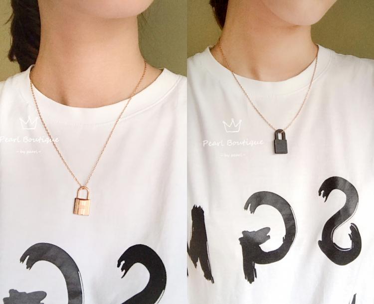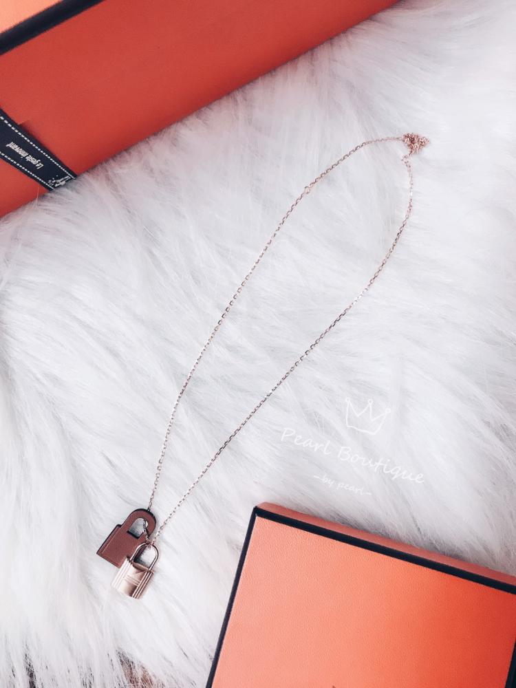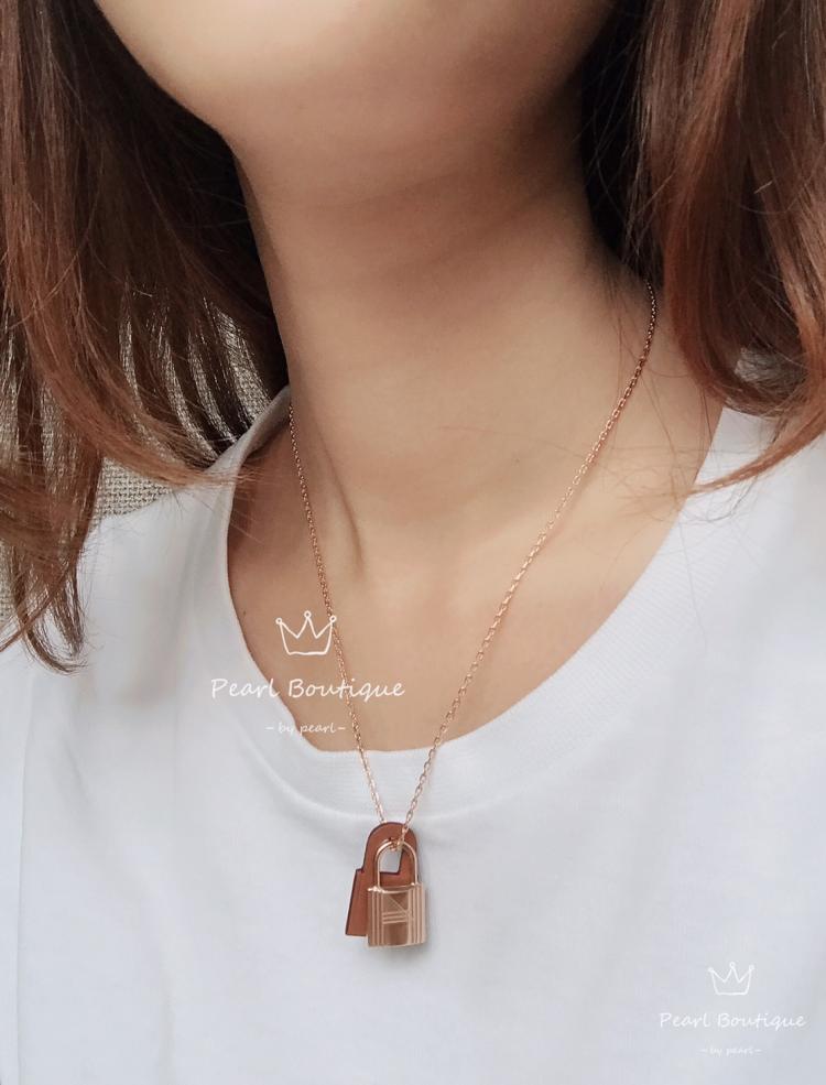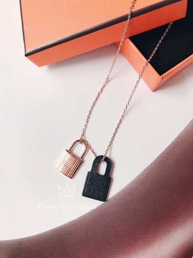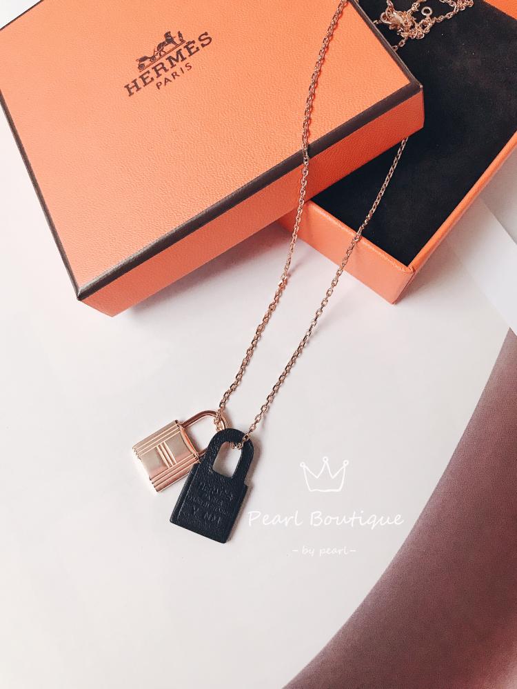 Hermes新款O’kelly皮革金屬鎖頭項鍊