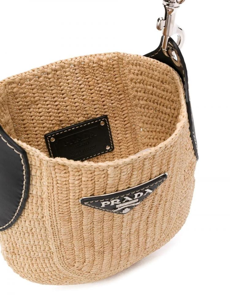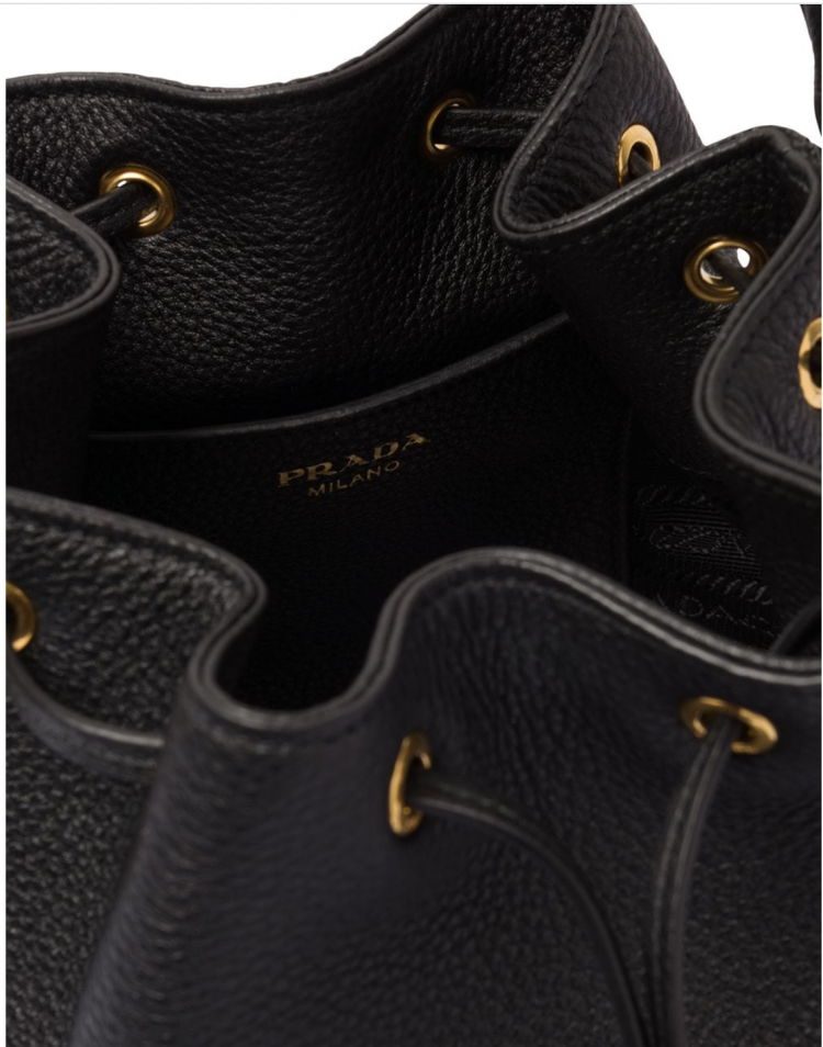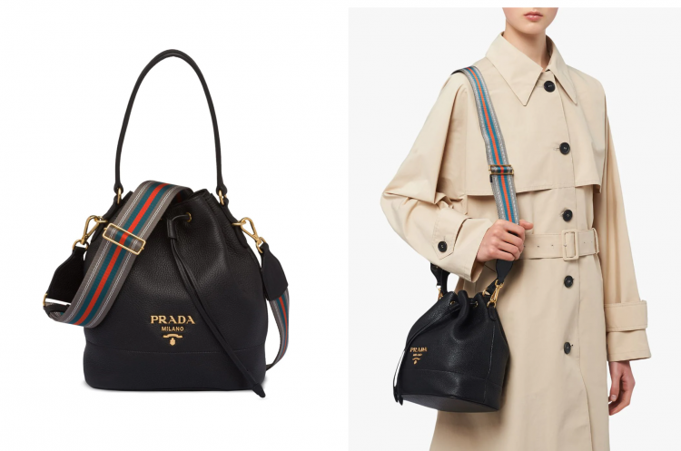 Prada粗背帶新款Logo皮革水桶包