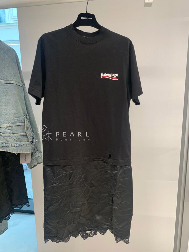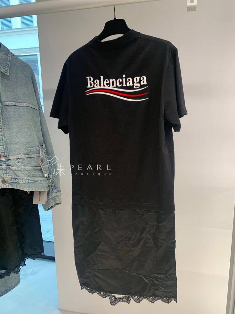 ➤ Balenciaga側邊可樂小Logo拼接復古蕾絲洋裝