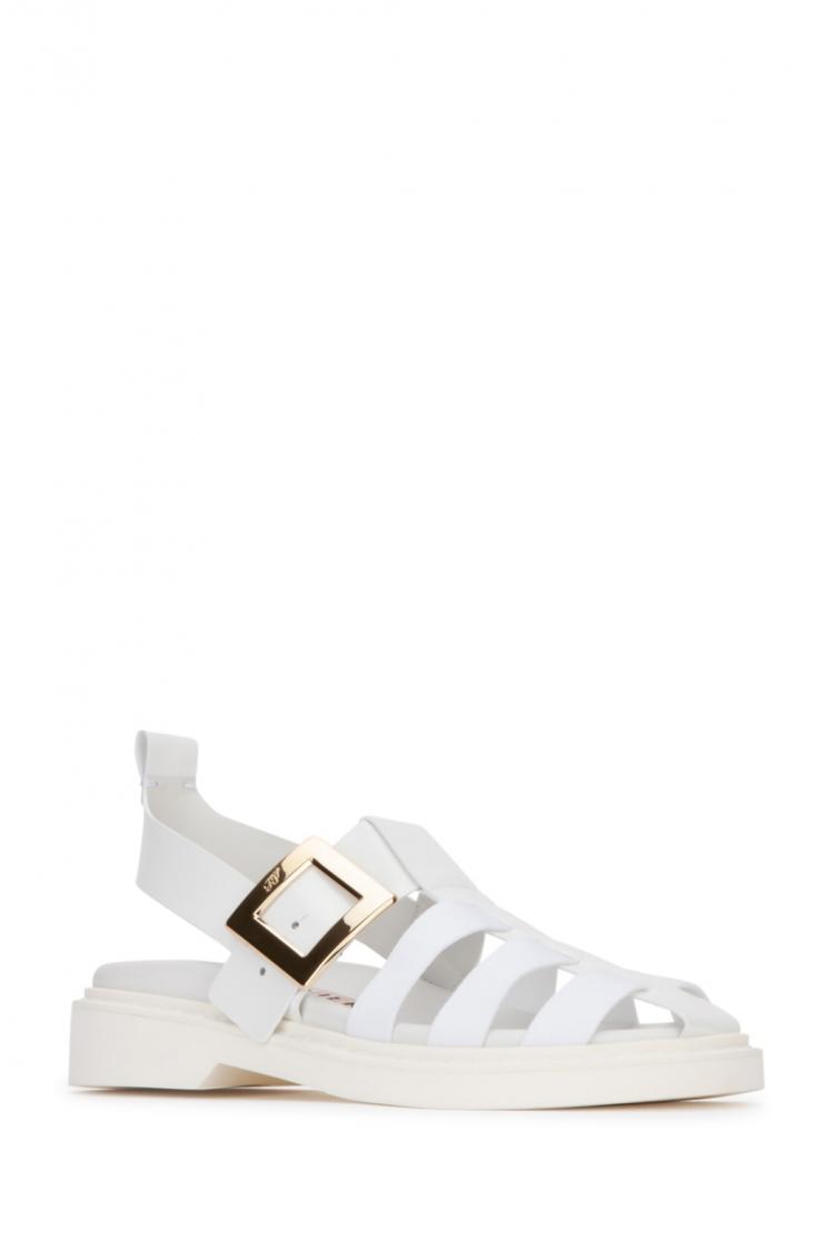 Roger Vivier 《獨家團購優惠》10月第1團 RV 最新白色羅馬方釦涼鞋