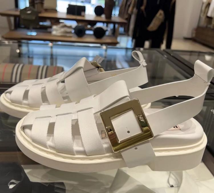 RV 最新白色羅馬方釦涼鞋