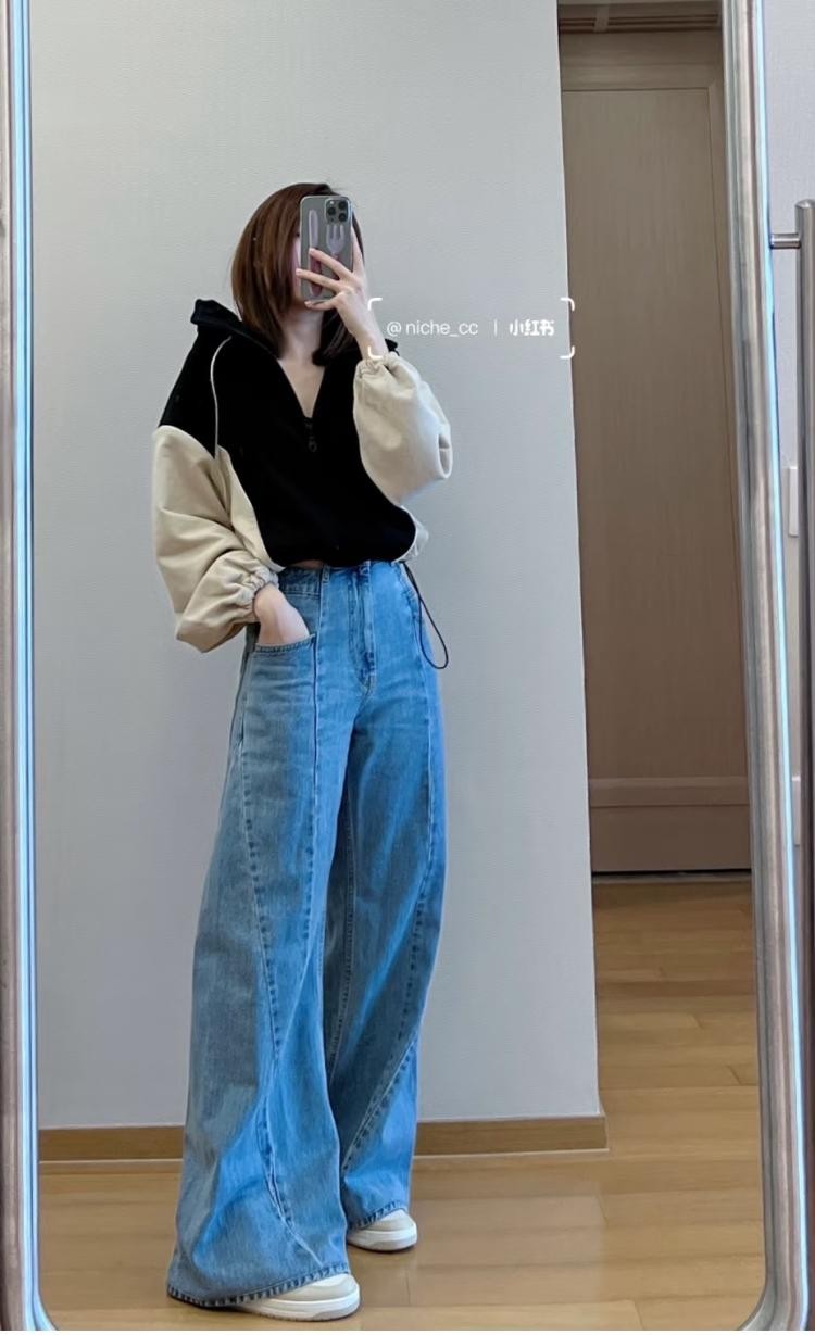 心凌最愛高腰寬版牛仔褲