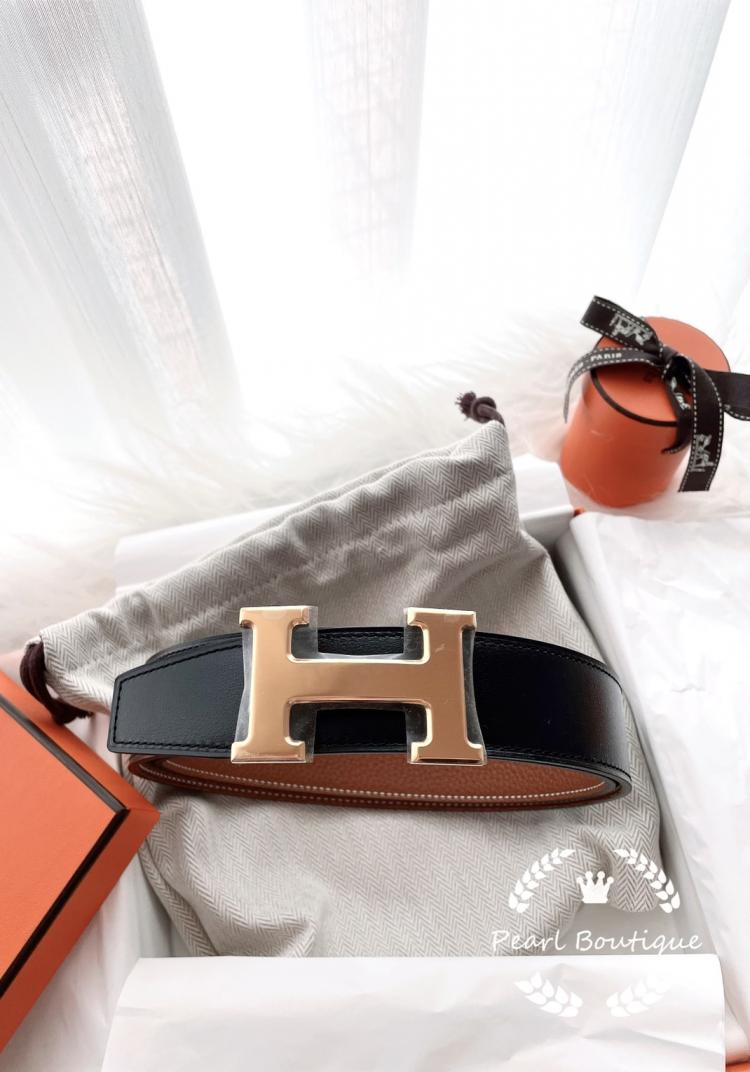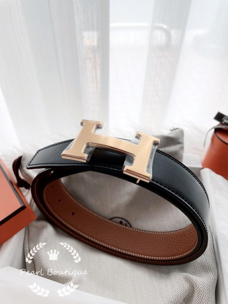 ✔37Gold金棕色 x 經典黑 雙面使用 / 金H釦