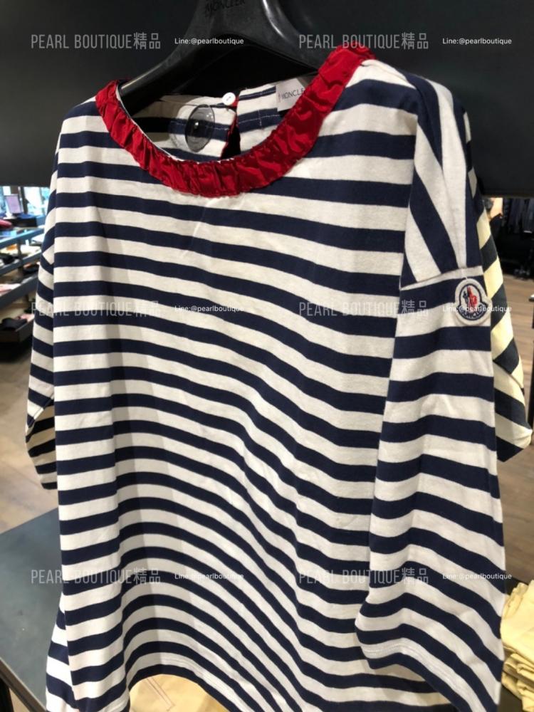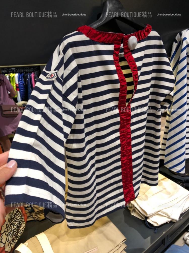 🟡紅色荷葉滾邊款海軍風條紋上衣