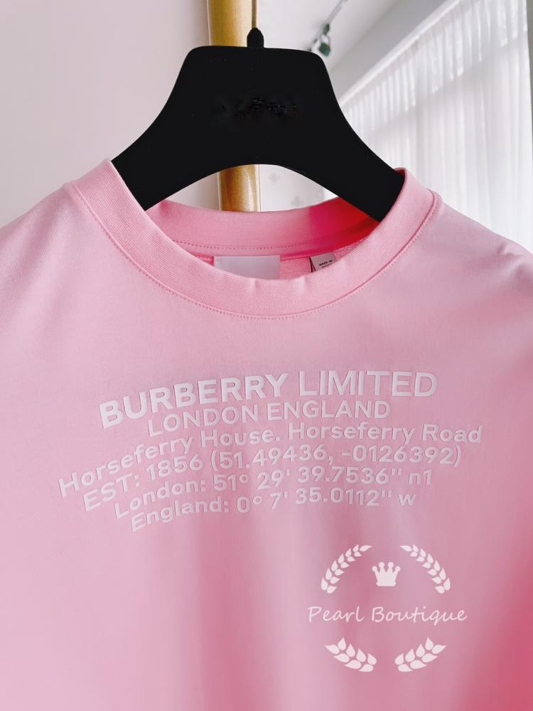 穿新衣 Burberry粉色文字款長袖上衣