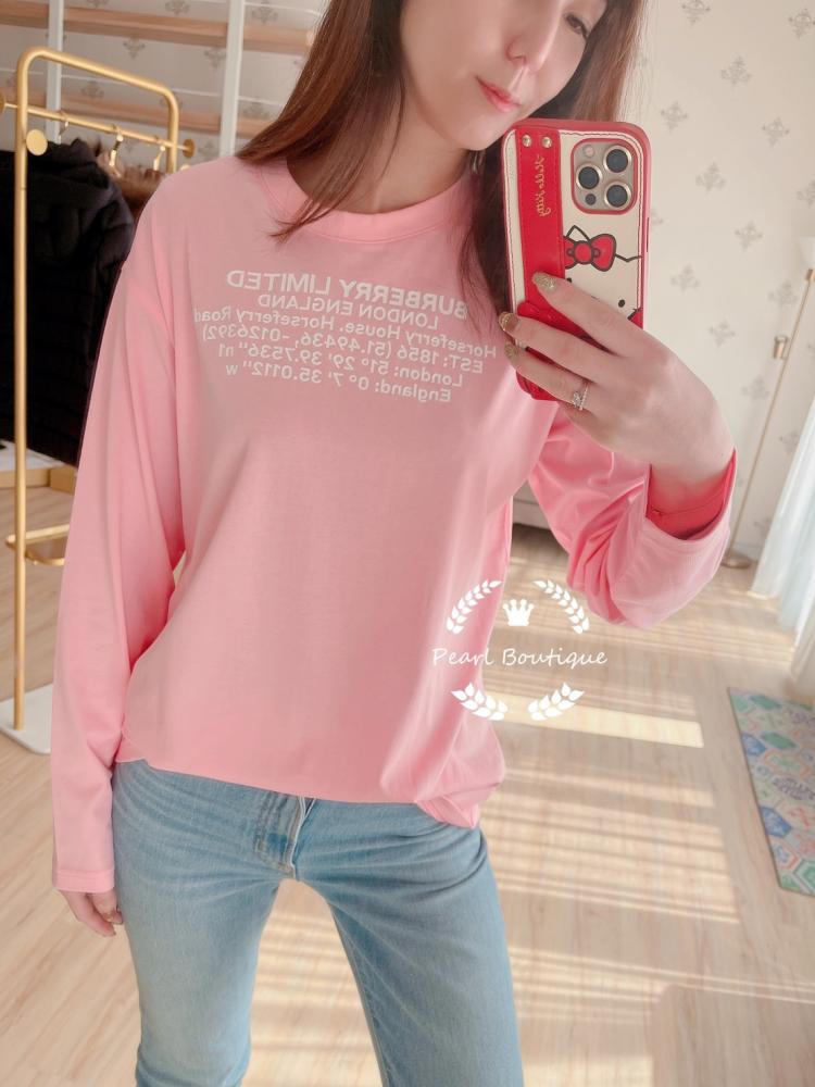 Burberry 💗粉色文字款長袖上衣💗