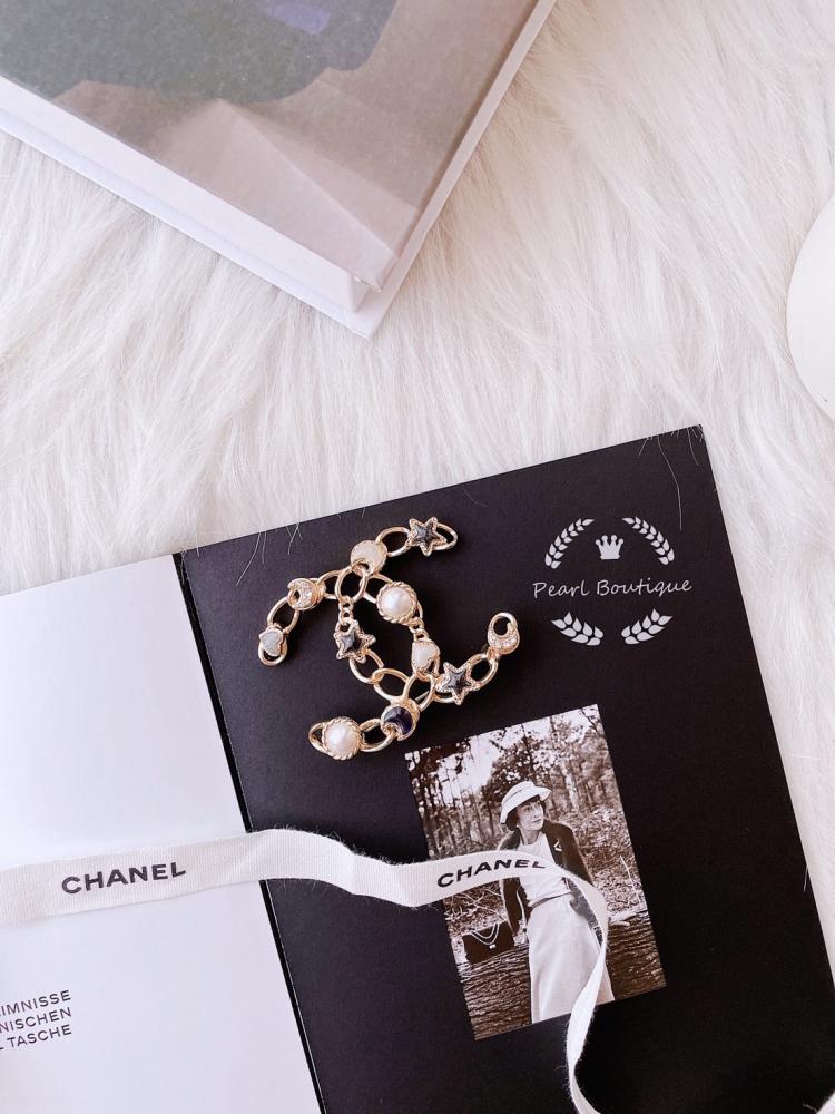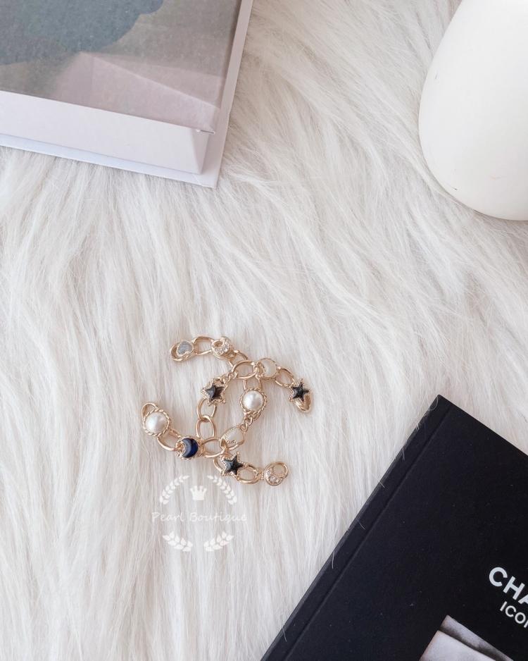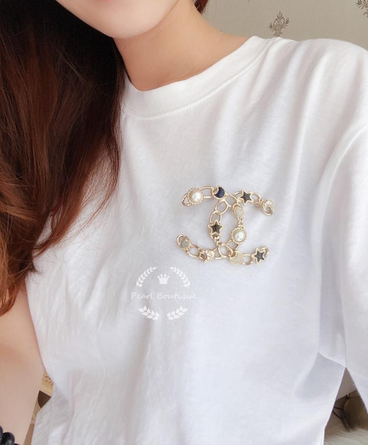 🌈星星珍珠雙C胸針