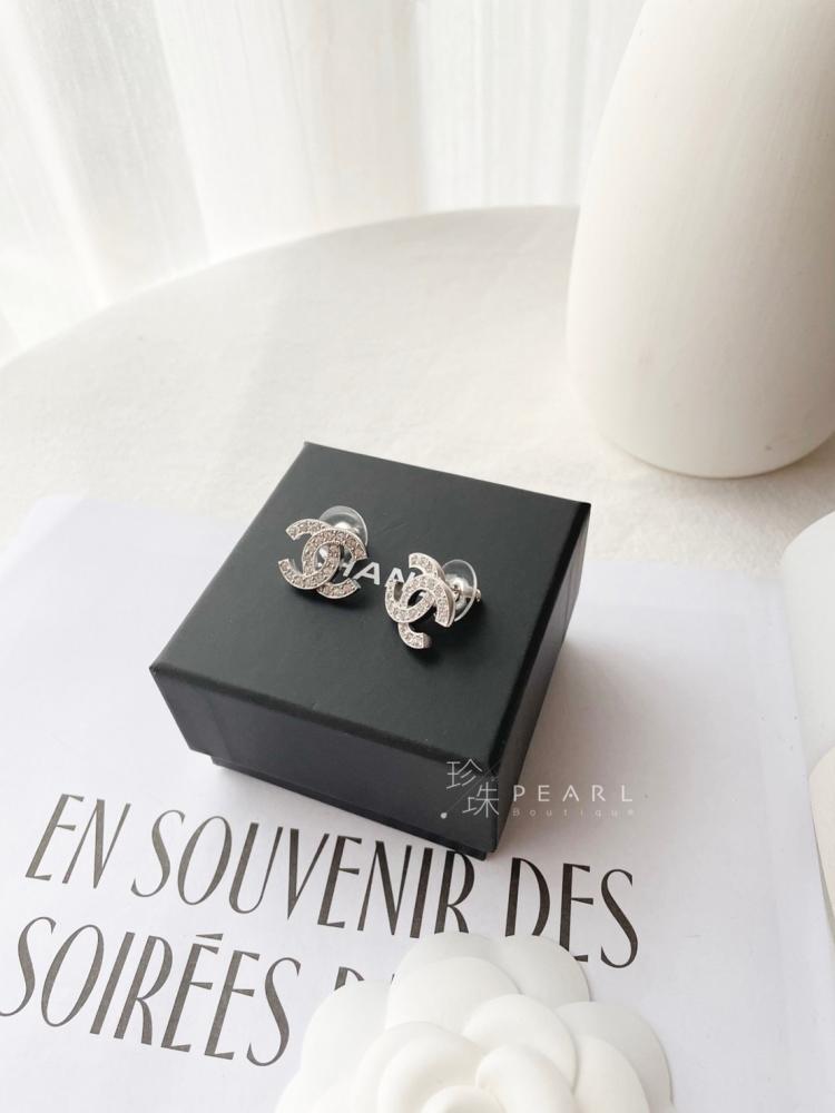 ✔️雙C刻邊水鑽款銀色·耳針式