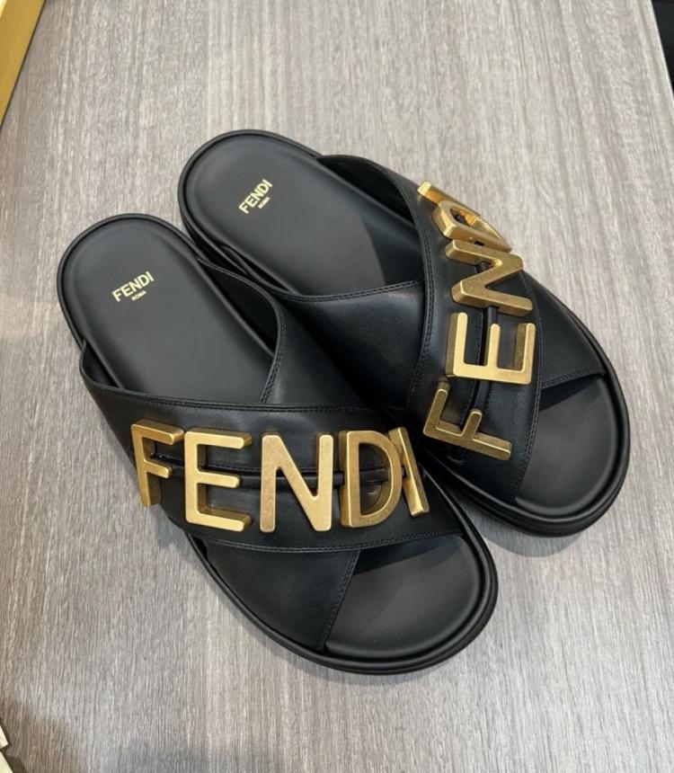 Fendi 22春夏最新金屬Logo二舅拖鞋