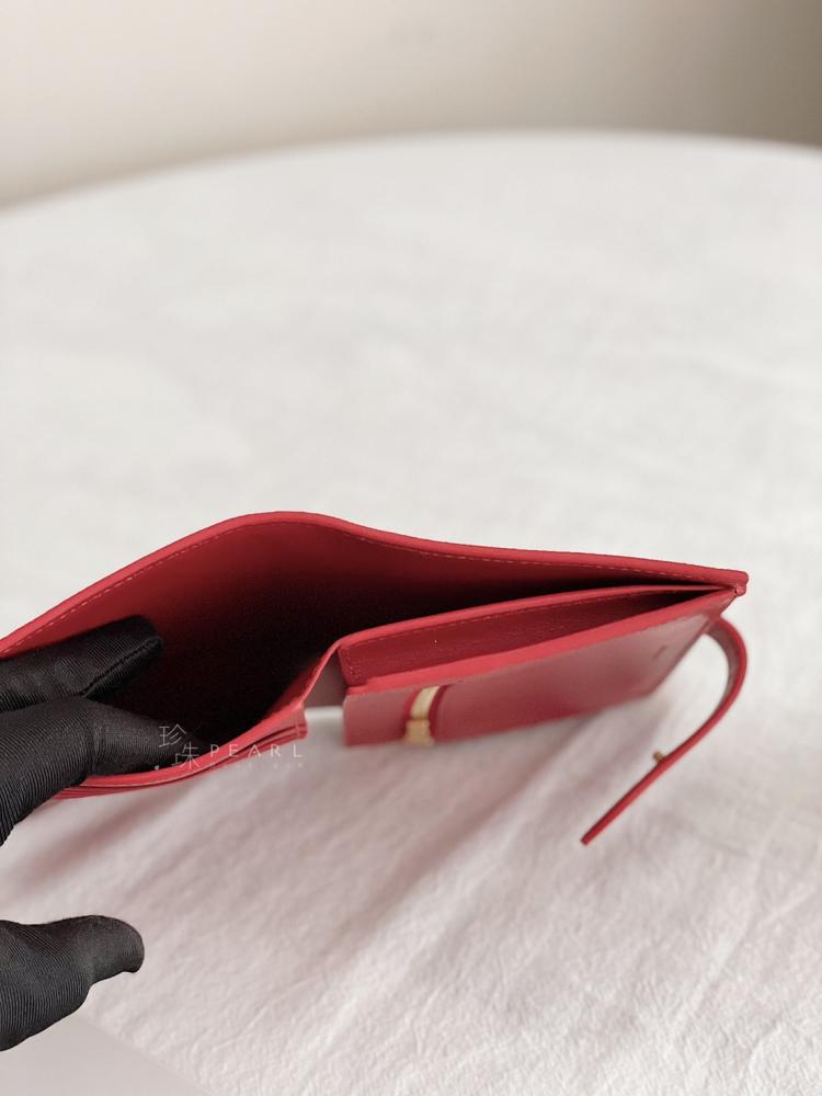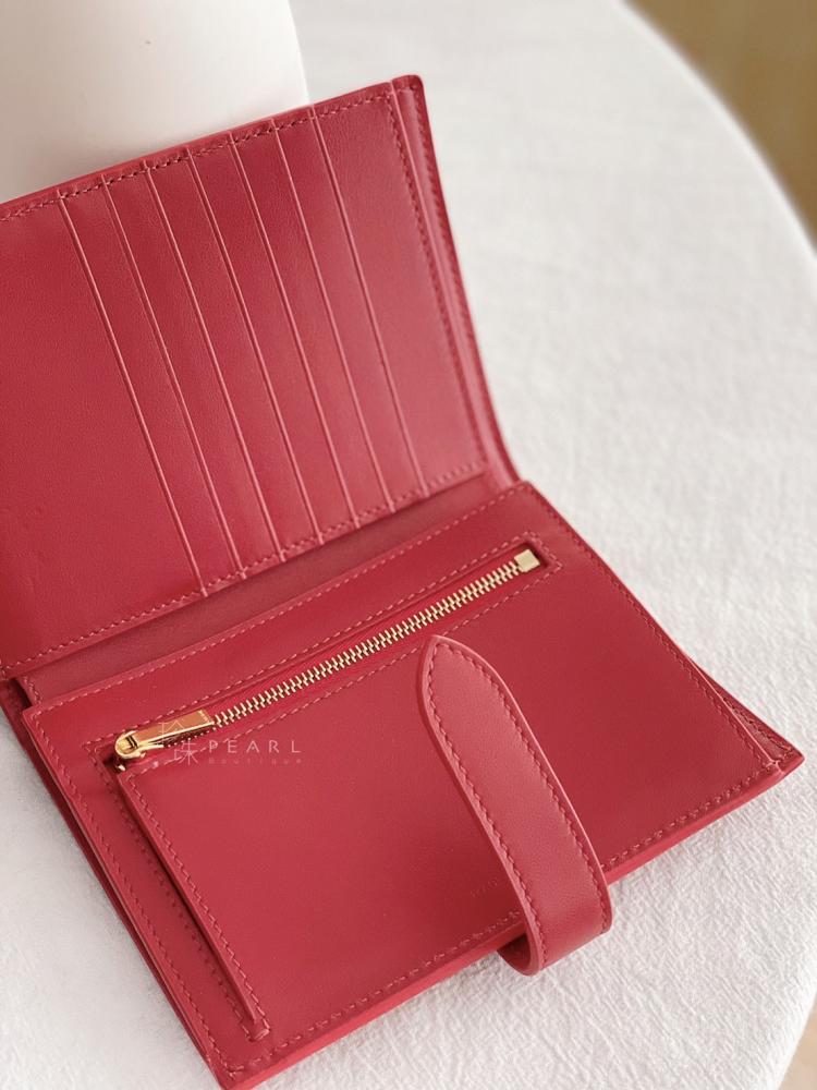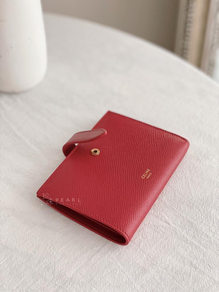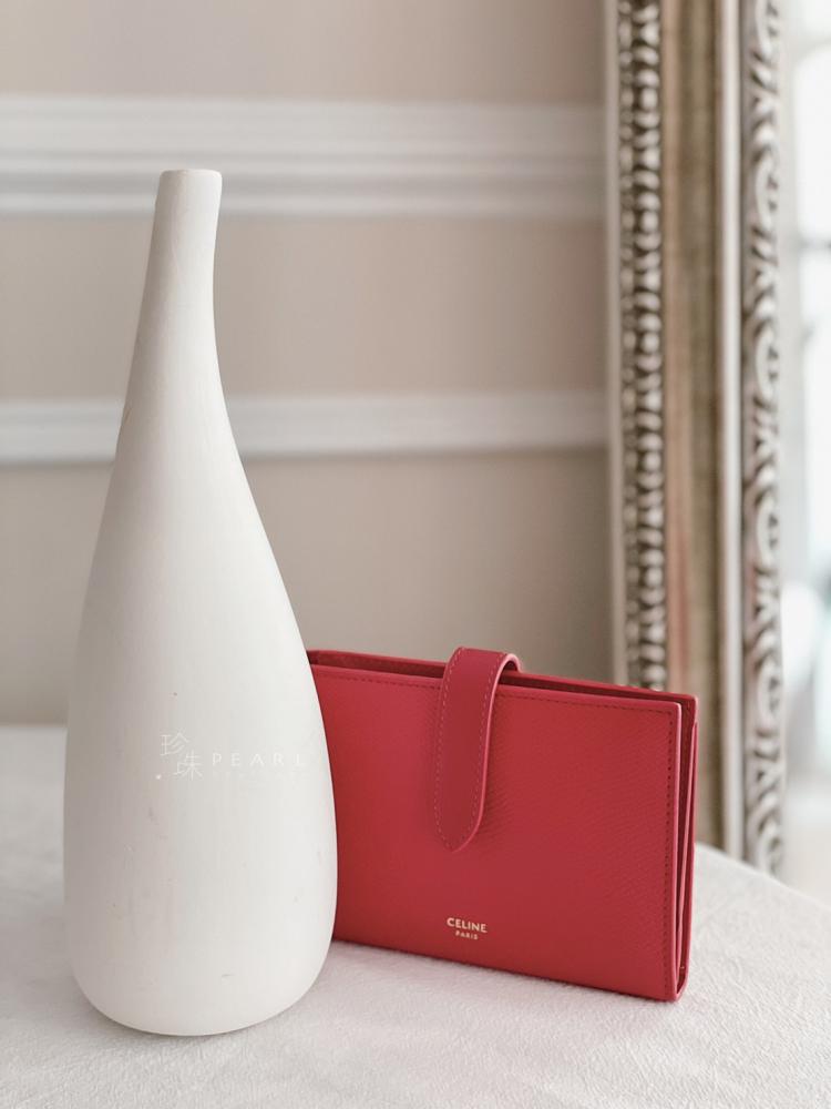 Celine Strap扣式中夾 ✔️胭脂紅✔️尺寸14 X 10.5cm 7個卡夾層 2個扁夾層 1個鈔票夾層 1個拉鍊零錢格 最實用款~推薦給喜歡中長夾的美女唷!