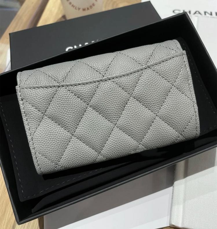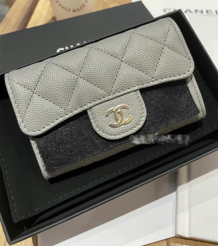 ✨最新22B CF卡包 冷灰色x金釦✨