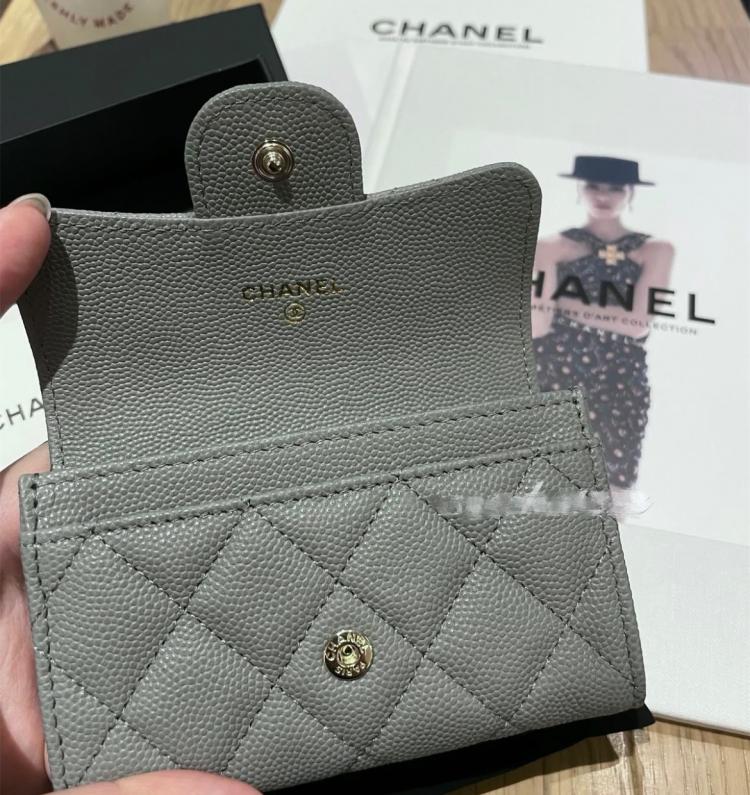 Chanel ✨最新22B CF卡包 冷灰色x金釦✨