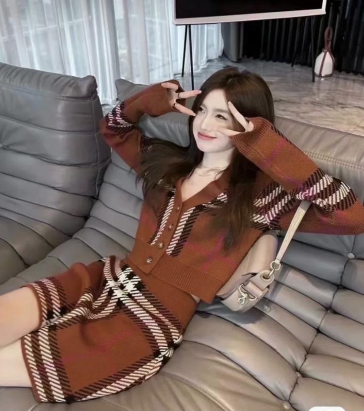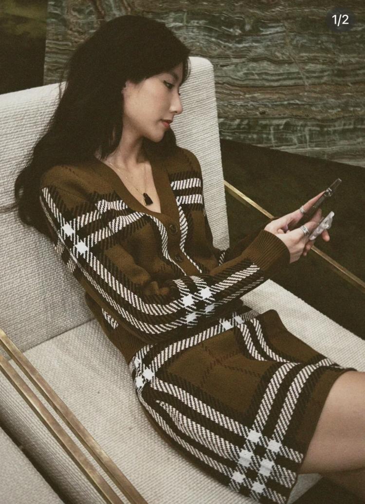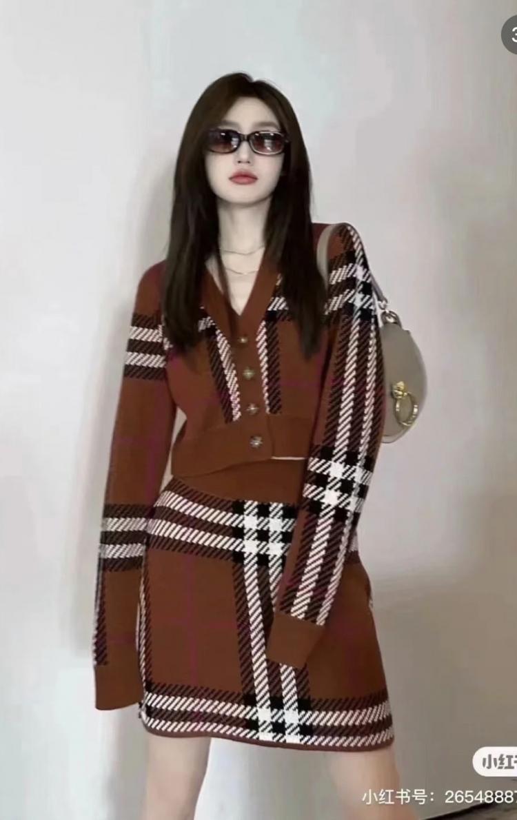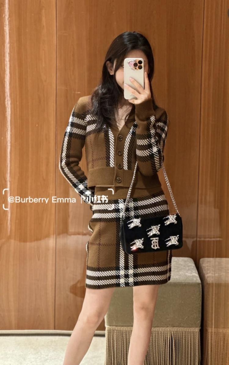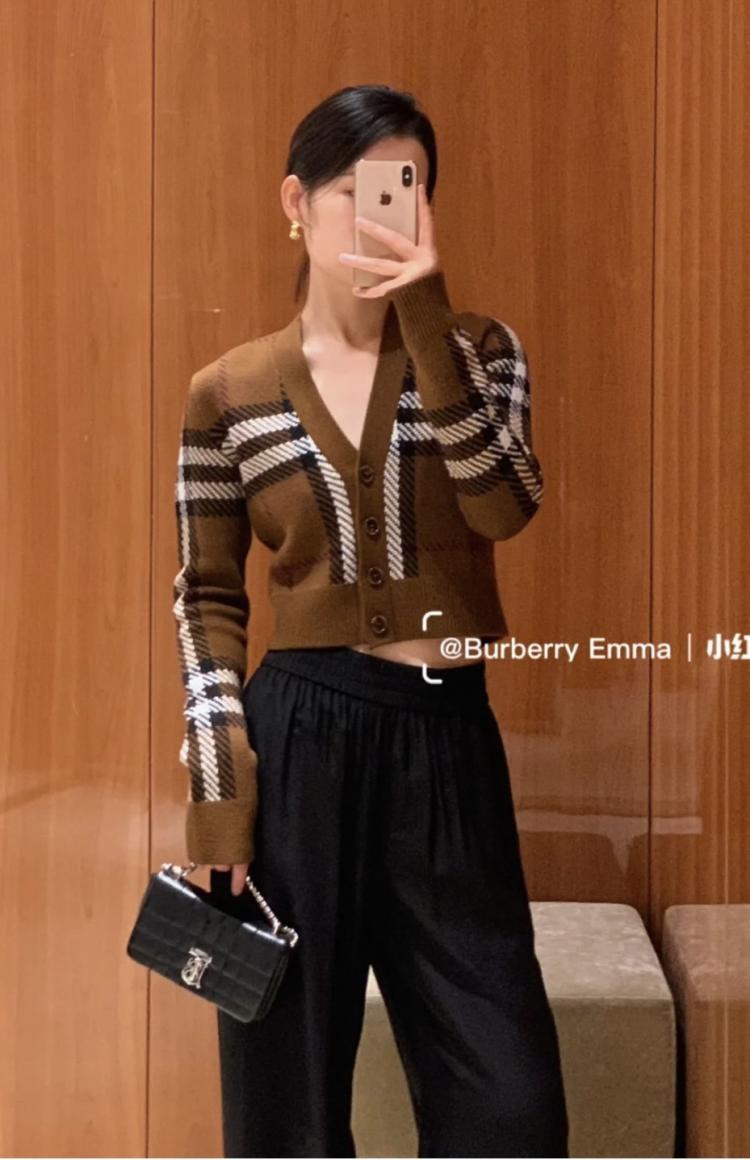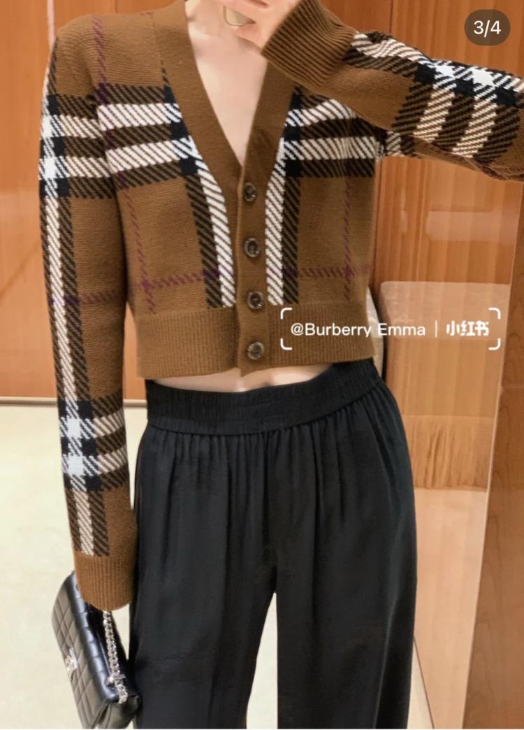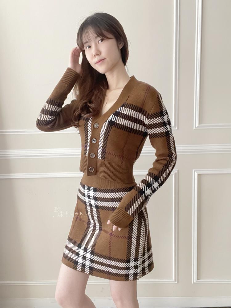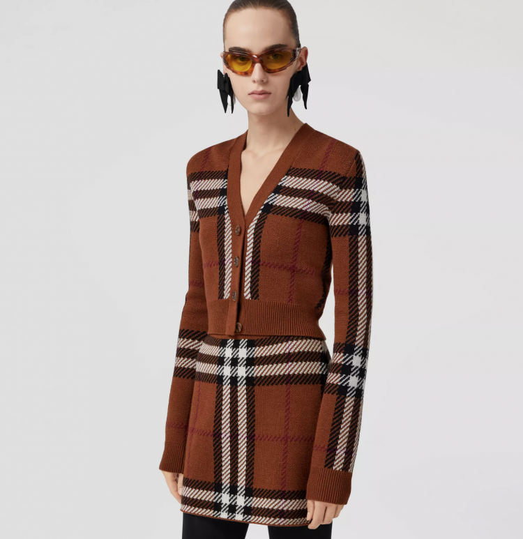 Burberry 短版格紋羊毛開襟衫套裝