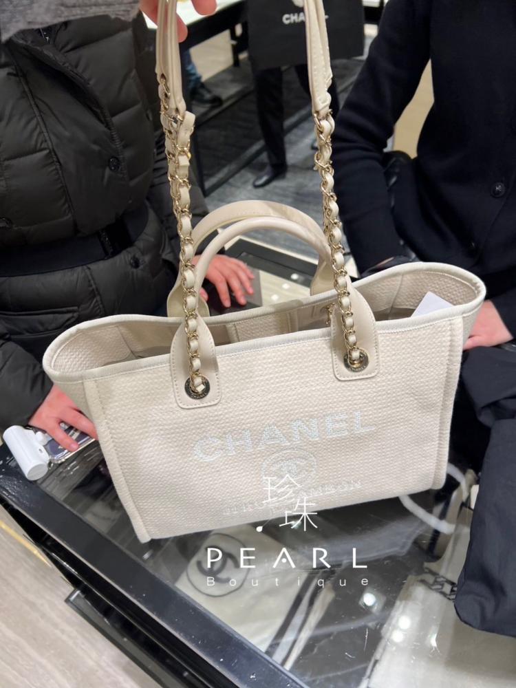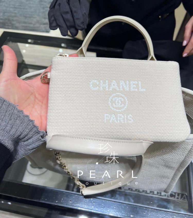Chanel 《歐洲現貨》經典沙灘包 奶昔白