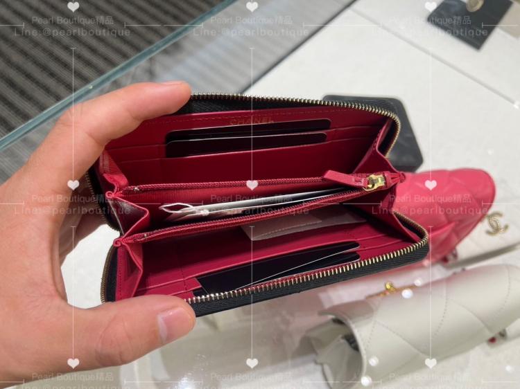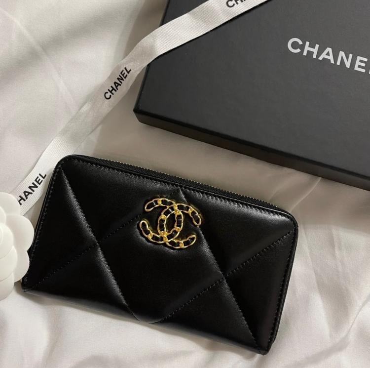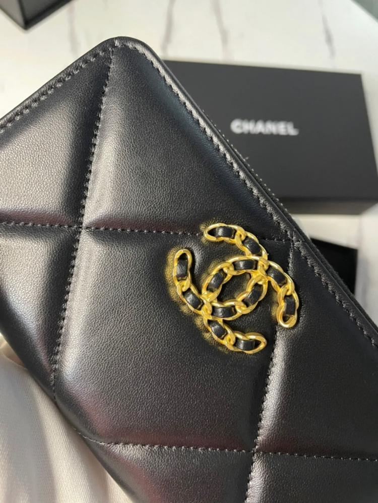 Chanel 19 ㄇ字拉鍊中夾 黑x金x羊皮