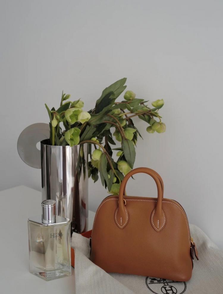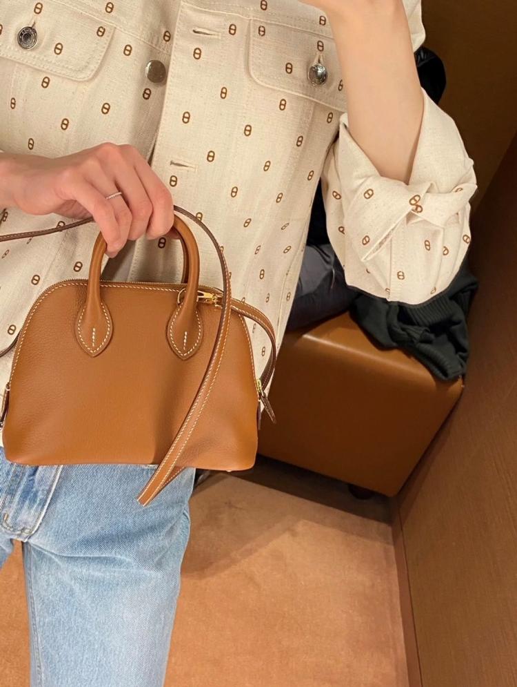 Hermes 《歐洲現貨》Mini Bolide 金棕x金釦