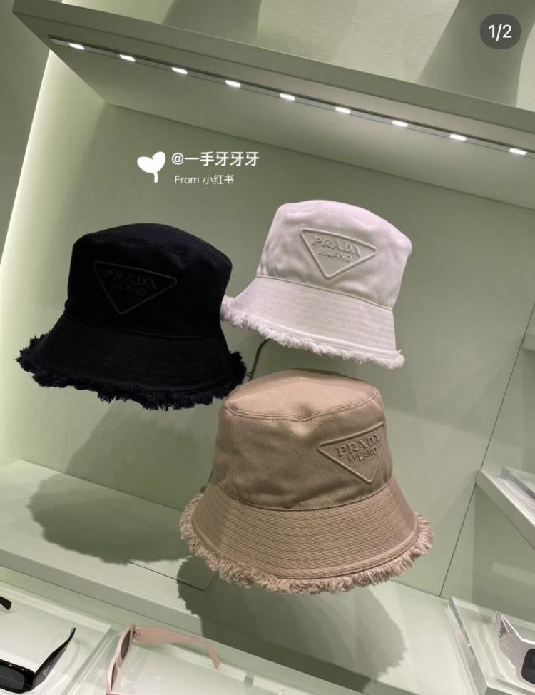 Prada 新款大三角流蘇漁夫帽