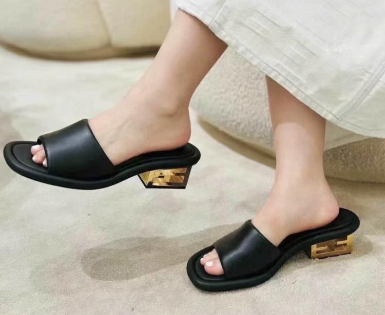 Fendi 優雅小羊皮鞋跟FF拖鞋