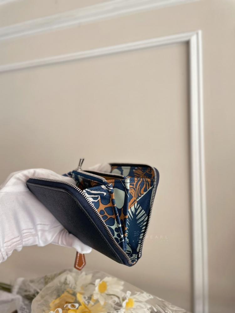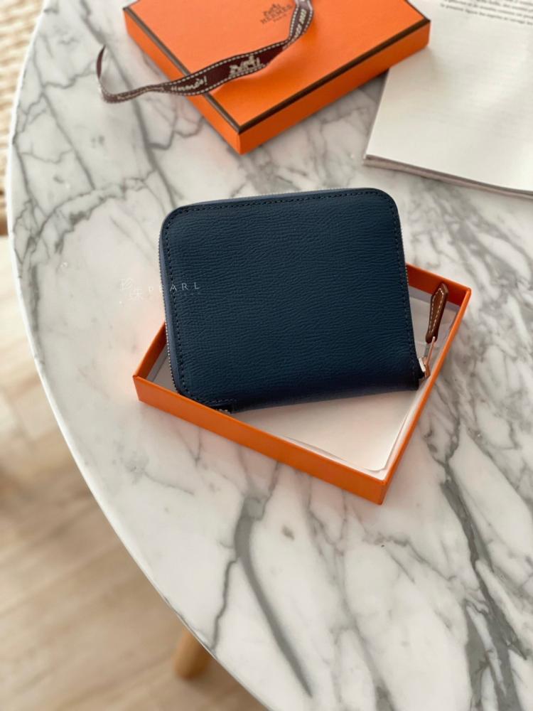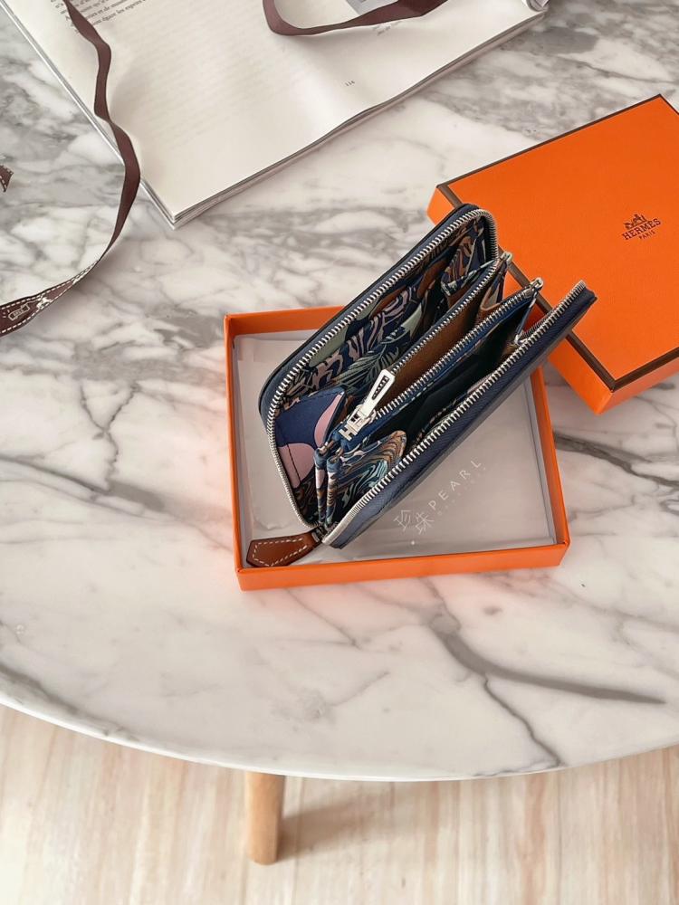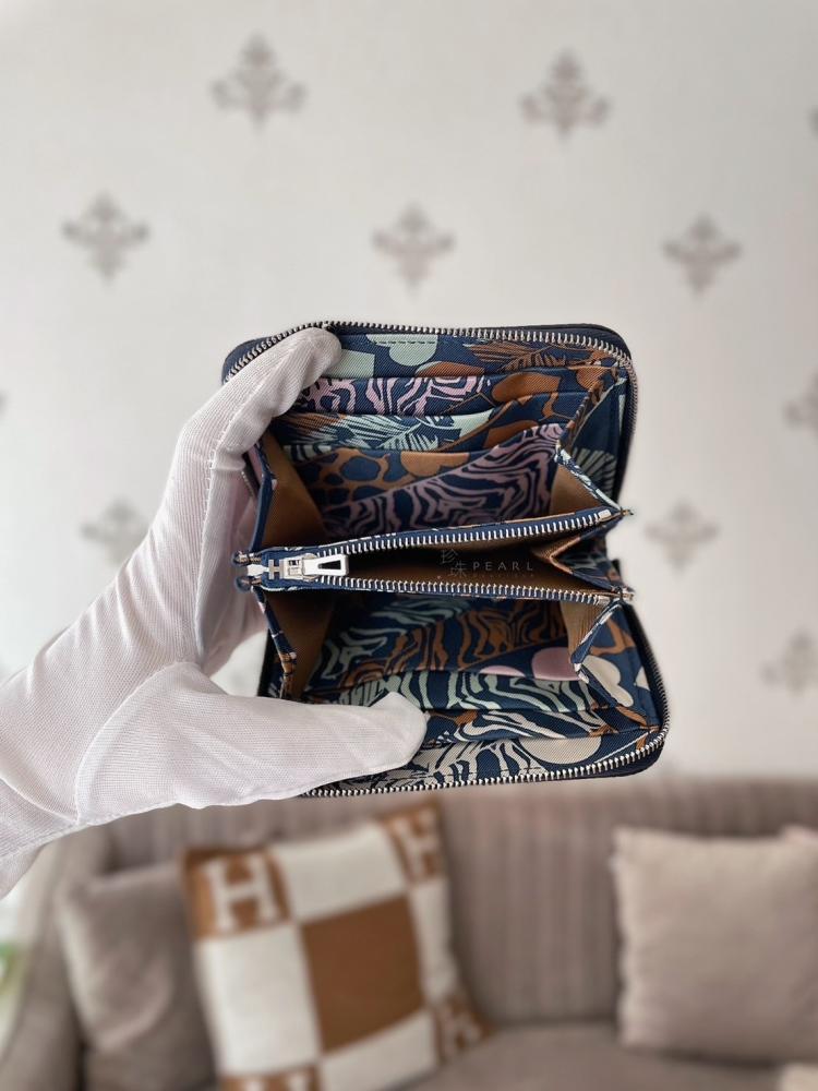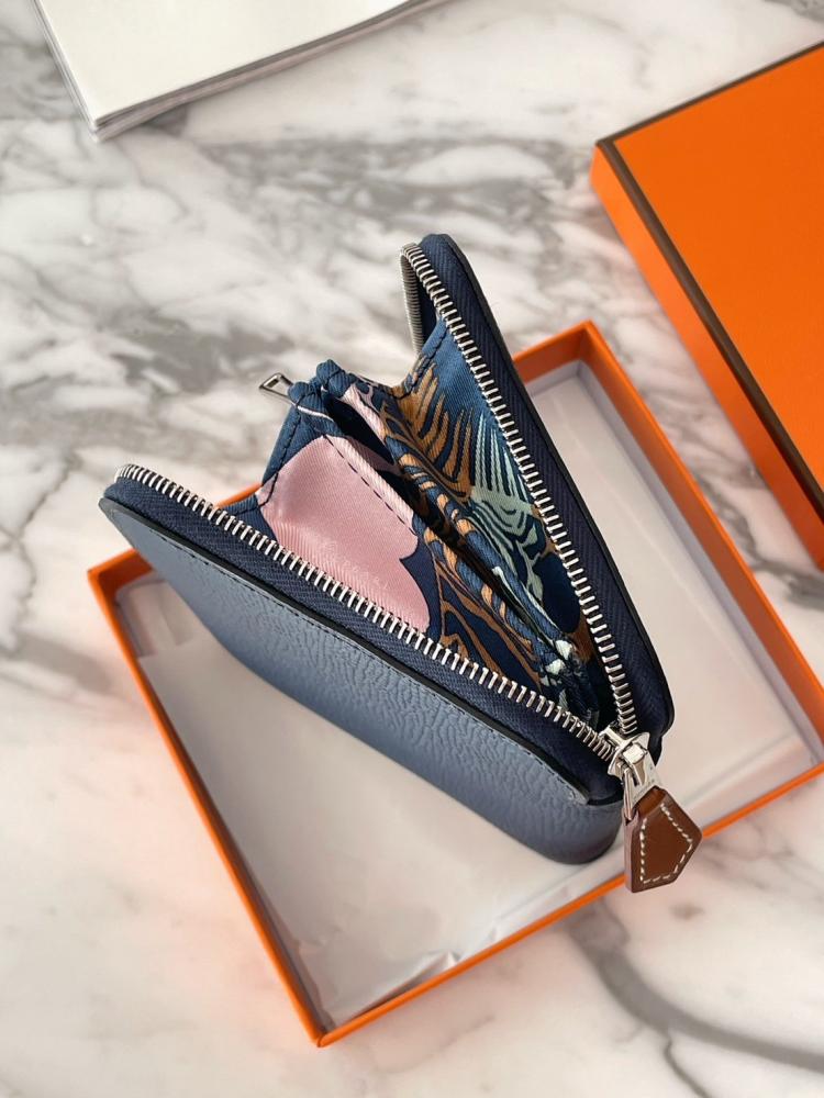Hermes 萬人求絲巾短夾🔥7P普魯士藍x金棕愛心絲巾內裏