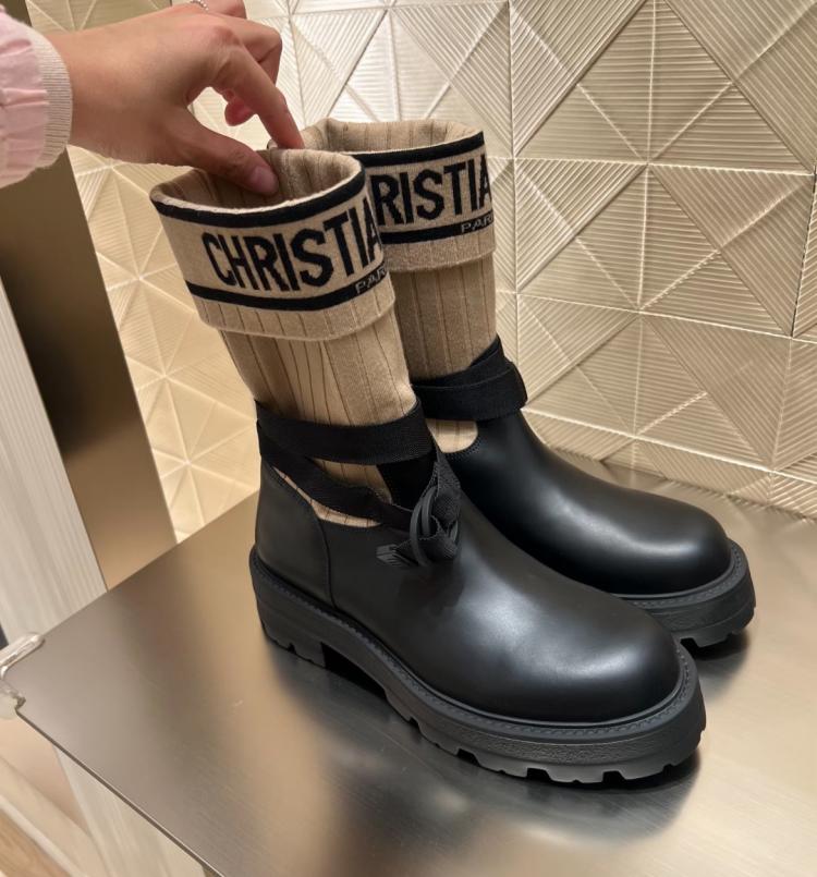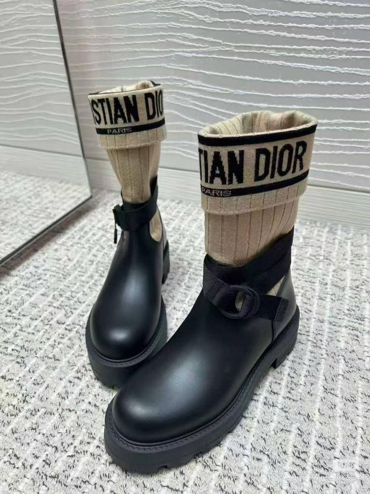 Dior ⟪超值團購優惠⟫ D-Major 大 logo 高筒拼接襪套靴