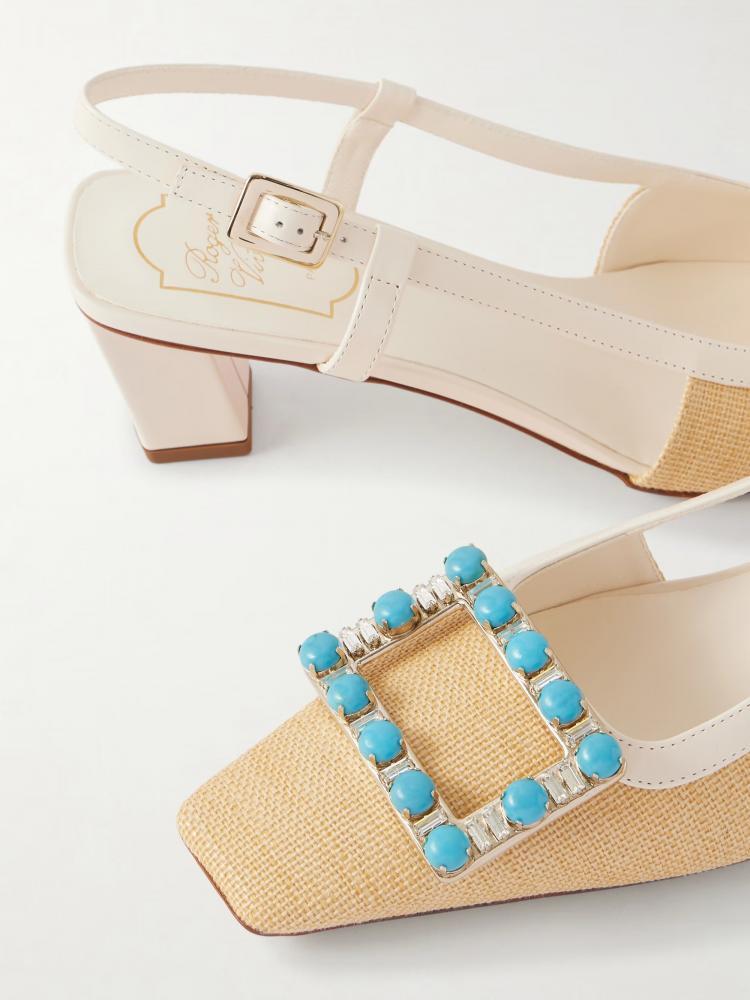 Belle Vivier 草編皮革Slingback